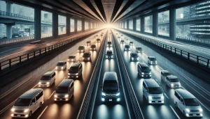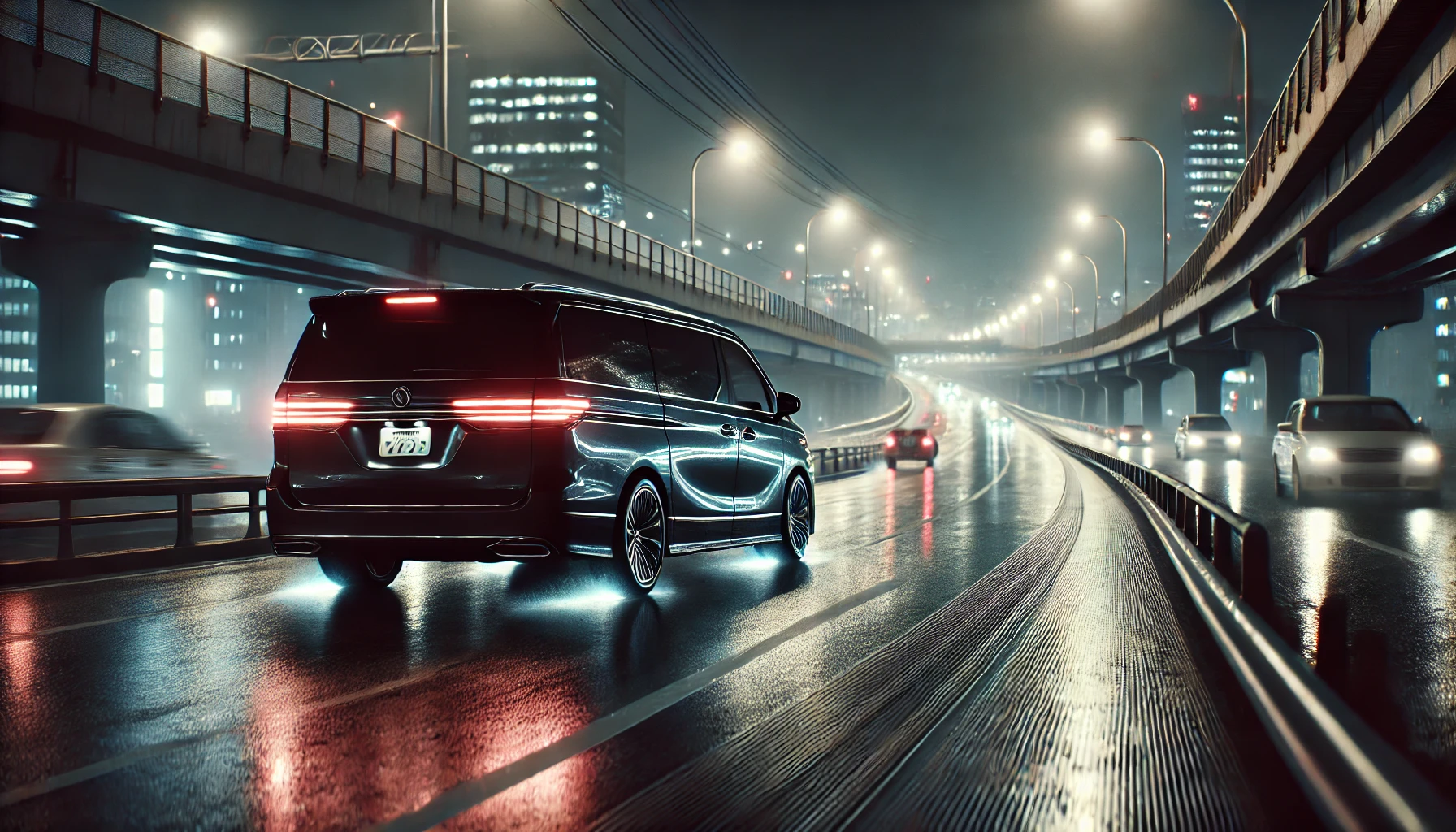 追い越し車線を流れていくアルファードは、テールランプの赤を一本の糸みたいに引きながら、静かに距離をほどいていく。