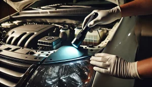 スマホライトでOKなので、光を斜めから当てて塗装の“肌”を見ます。これだけで発見率が一気に上がる。