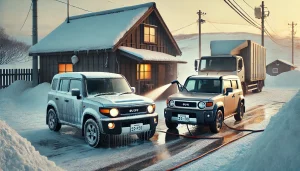 - JB64(660cc):日常の取り回しと維持の軽さ。雪の日の“生活道具”として強い。